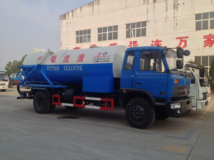 東風145、153平頭清洗吸污車(罐體容積8000--12000L)采用東風原裝二汽底盤,具有安全性能高、動力強勁、噪音小、底盤強度高耐用等優點,發動機采用東風原裝康明斯170馬力、190馬力柴油發動機和廣西玉柴160馬力、180馬力柴油發動機,9.00-20-10.00-20輪胎,帶方向助力,不帶空調,斷汽剎,整車外形尺寸(mm):8150 /2495 /3050,總質量(kg):14900,整備質量(kg):7500,額載質量(kg):7205。罐體有效容積:8噸-12噸,帶公家免征公告。