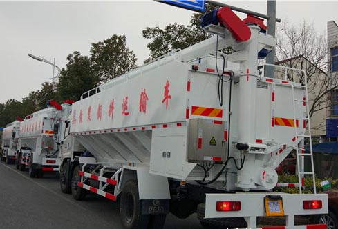 此次用戶訂購的這批散裝飼料運輸車是于農(nóng)歷新年前訂購的,也是該用戶前期定購2臺液壓飼料運輸車后又再次訂購的電動絞龍散裝飼料運輸車。該車采用東風(fēng)天錦小三軸系列底改裝,康明斯210馬力發(fā)動機,11.00R20鋼線胎,標準分4倉。