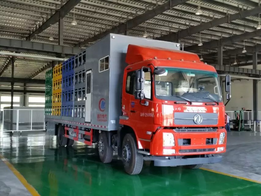 該車可裝固定蜂箱120箱, 中間走道可堆放130箱,貨箱9.6米,帶整體升降平臺,蜜蜂踏板液壓開啟,3000磅吊機,多功能后爬梯,床鋪,太陽能發電裝置,可根據用戶需求,加裝灶具,洗浴等設施。