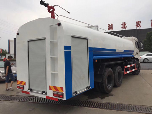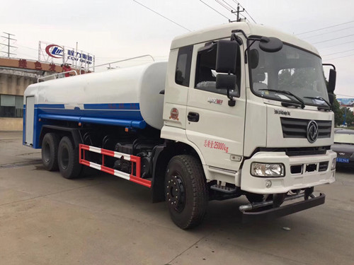 DLQ5254GQXLV5多功能灑水車,底盤型號:EQ1250GLJ,新款御龍或T5駕駛室多功能灑水車、康機(jī)210馬力或玉柴240馬力發(fā)動機(jī)、大八檔變速箱、280×80×(7+4)mm大梁、5噸前橋、10噸雙后橋、軸距4350+1300mm、輪胎11.00尼龍輪胎(或10.00鋼絲胎),配備30后置消防泵,24型消防炮,射程50-60米(后雙橋多功能灑水車(16-18噸)
