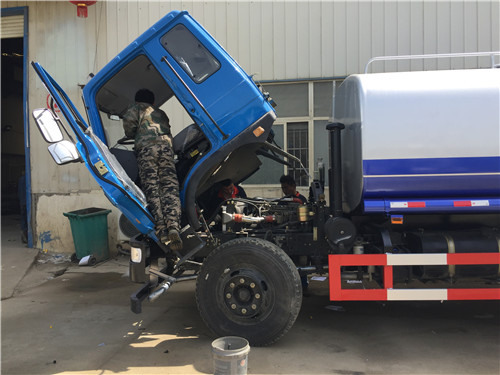 灑水車貯水箱設有排污管,該管的進口為水箱的最低點。經過一段時間的使用,應定期打開排污管開關,將罐內積存的雜物排除,直到水變清為止。