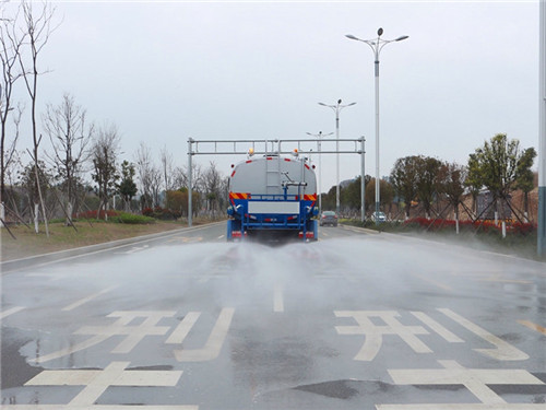 2)行車灑水。新款東風專底灑水車到達灑水作業點后停車,掛好灑水取力器擋,然后按設計的灑水作業速度行駛,同時打開灑水開關,將水罐中的水灑向需要的地方。