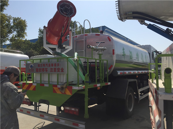 功能說(shuō)明: 灑水車前裝有鴨形噴嘴或圓頭沖嘴,后面裝有圓柱開灑水噴嘴或蓮蓬頭噴嘴,后部有一工作平臺(tái),裝配有水炮。帶消防接頭,帶自流閥,帶自吸功能,選配20米綠化消防卷盤。