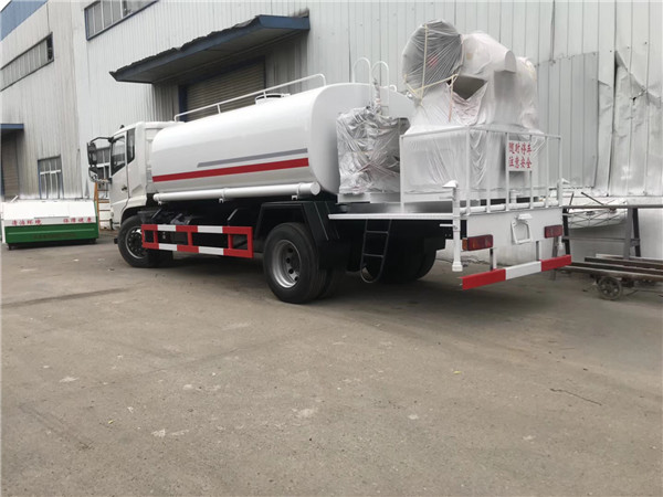 灑水車工藝精良經久耐用,前噴后灑,前裝有鴨形噴嘴或圓頭沖嘴,后面裝有圓柱開灑水噴嘴或蓮蓬頭噴嘴,后部有一工作平臺,裝配有高壓水炮。后部還可裝8個噴嘴(選裝)噴水器一般用于沖洗街道。前沖:寬7米 前沖:寬7米