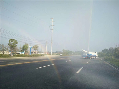 灑水車專用性能:具有前沖后灑、側噴(更換噴頭后變為側花灑)、后置式工作平臺(帶踏梯,四周有安全護欄)、平臺上設置有高壓水炮(可360°旋轉,可調成柱狀,也可調成霧狀,可調成:直沖狀、大雨、中雨、小雨、毛毛雨)。配備全國評比第一的杭州威龍專用灑水泵,選億豐泵或金龍泵,雜物過濾網,國標通用65型消防接口(可通過消防栓加水)、1套自流球閥系統(可自吸自排),2根引水鋼絲膠管(帶陰陽快速接頭),水位計。