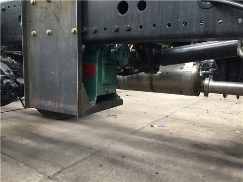 灑水車前沖(我們經??吹綖⑺嚊_洗路面是從車前端下部,兩個噴頭對沖噴出高壓水柱,高壓水柱效果可以對沖三個車道左右)