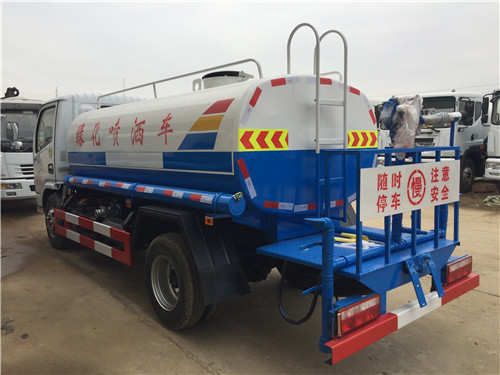 灑水車后灑(一般在小區,廠區,煤場,這種窄點的路況可以用后灑降塵,噴出來的水狀為扇形)