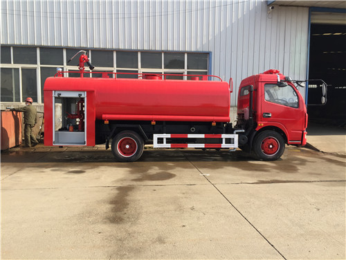 新款東風6噸水罐消防車采用東風底盤改裝,(新款)平頭雙排駕駛室,液壓翻轉,東風康明斯ISB190 50發動機,190馬力,國五排放,罐體容積5.75立方米;整車結構緊湊,方便靈活,動力性能好,車速高,能自由進出鄉村狹窄道路及小區,具有消防車的全套消防功能,上裝箱體的上裝骨架全部采用引進歐洲技術生產的鋁合金型材制造,整車的重量減少,機動性能和整車載重量提高。