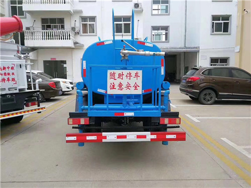 上裝配置:罐體有效容積為5立方灑水車,帶大功率專用灑水泵,罐體鋼板為4MM碳鋼Q235材質,罐體及整車外形尺寸按照公告。整車前沖、后灑、側噴、帶65消防接口,后平臺帶泡不帶門,前封頭帶水位計,后平臺主管路帶1寸澆花接口,后爬梯。平臺后部帶小安全告知牌:“隨時停車,注意安全”,帶兩根水管及陰陽端。罐體顏色:上銀灰下銀藍,罐體兩側噴“綠化灑水車”字樣,貼反光標示。