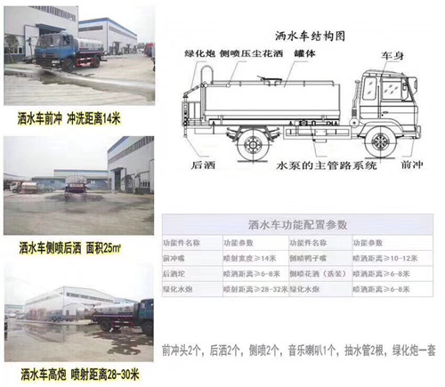 福田灑水車、綠化噴灑車專用功能:綠化環(huán)衛(wèi)多功能,適合于城市小區(qū)工廠的綠化環(huán)衛(wèi)用,采用全國(guó)質(zhì)量領(lǐng)先的大功率專用灑水泵。前沖(噴)后灑、帶側(cè)噴(花灑)、帶后工作平臺(tái)、平臺(tái)上安裝綠化灑水高炮(炮有大雨、中雨、毛毛雨、霧狀可調(diào)節(jié)),帶吸水管,帶消防接頭,帶自流閥,自吸自排,可選配20米綠化噴藥卷盤、高空作業(yè)、隨車吊貨運(yùn)等功能。