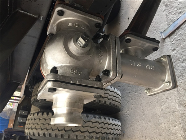 福田灑水車目前采用東風,解放系列取力器,氣動操作,操作開關向后拉,取力齒進入嚙位置,通過傳動軸帶動水泵工作,開關向前回位,水泵即停止工作。