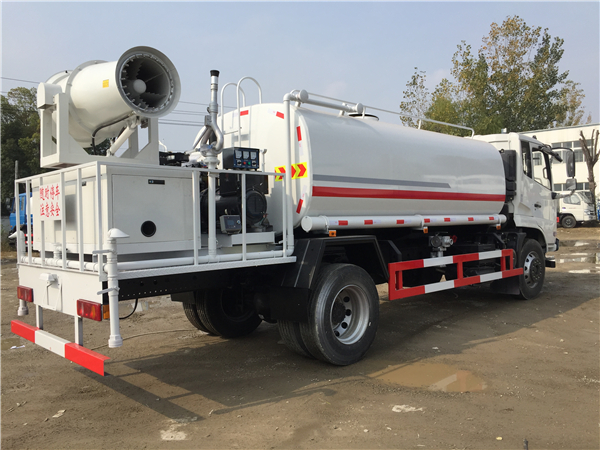2.抑塵車功轉換效率高、射程遠、覆蓋面積大、霧粒細小且均勻、抑塵效果好。水霧與飄在空中的塵埃接觸時,被塵埃所吸附,加大塵埃的比重,抑制塵埃在空氣中的流動,并加速塵埃沉降,實現對空氣的凈化。