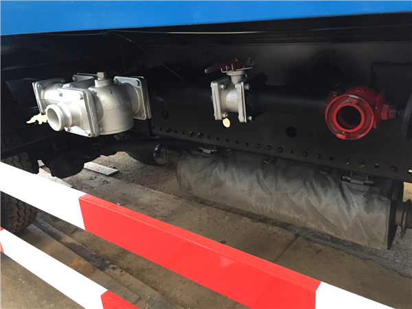灑水車在應(yīng)急消防時(shí),其操作程序是:調(diào)節(jié)三通球閥 G 到如圖位置(注意:三通球閥凹坑所對(duì)方向關(guān)閉),關(guān)閉不銹鋼球閥 A、B、C、D、E 和鋁合金球閥 H,打開(kāi)消防栓 I 和不銹鋼球閥 F,踏下離合,打開(kāi)取力器開(kāi)關(guān),慢慢松開(kāi)離合(千萬(wàn)不可過(guò)快,否則將會(huì)損壞取力器或變速箱),使水泵開(kāi)始工作,即可通過(guò)灑水炮和消防栓出口應(yīng)急消防,停止工作后開(kāi)關(guān)回位。