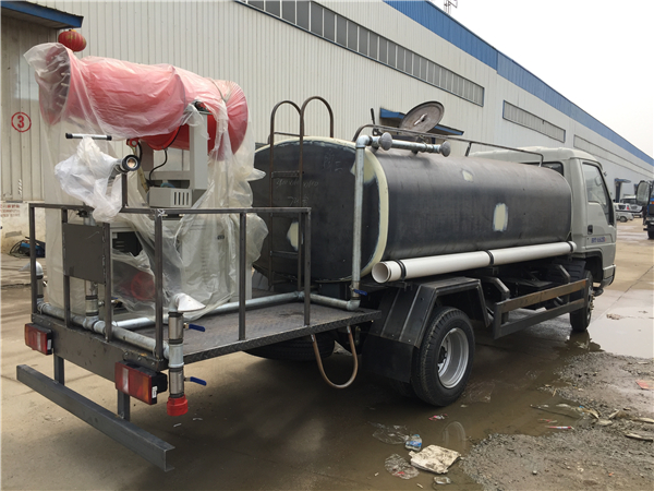 福田時代5噸抑塵車:福田時代底盤,軸距3360mm,安徽全柴490EGR發動機,7.00-16尼龍胎,帶暖風,氣剎(或油剎),不上牌抑塵車價格最低。▲垂直吸程>7米,灑水寬度>14米,射程>28米。前沖(噴)):(能將路面泥巴、塵土、垃圾沖干凈);后灑(能均勻地將水灑在路面,灑水寬度>14米)、前側噴(花灑)(均勻地將路旁綠化帶澆灌)、后工作平臺,平臺上裝綠化灑水炮(炮有大雨、中雨、毛毛雨、霧狀可調節沖洗高大樹木),灑水泵,消防接頭,自流閥,過濾裝置、人性化爬梯及側防護欄,音樂喇叭。