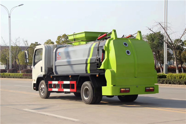 餐廚垃圾車由密封式垃圾廂、液壓系統、操作系統組成。整車為全密封型,自行壓縮、自行傾倒、壓縮過程中的污水全部進入污水廂,較為徹底的解決了垃圾運輸過程中的二次污染的問題,避免了給人們帶來不便,關鍵部件采用進口部件,具有壓力大、密封性好、操作方便、安全等優點。 可選配后掛桶翻轉機構或垃圾斗翻轉機構。