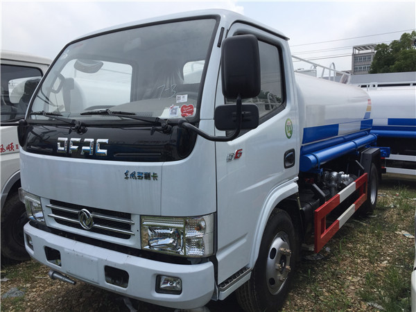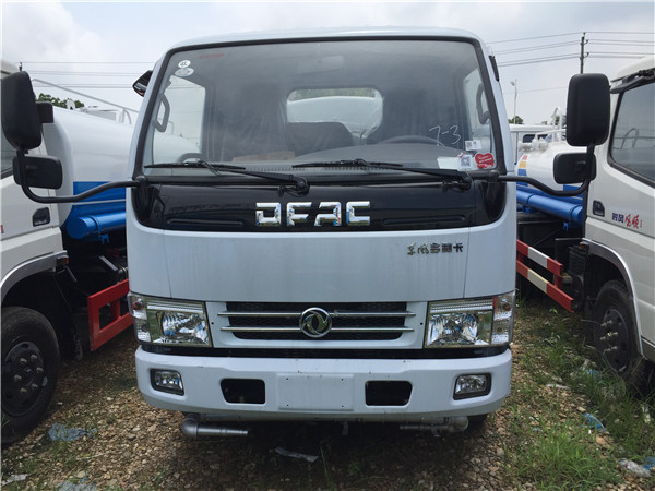 采用東風福瑞卡底盤,朝柴95馬力發動機,東風5檔變速箱,3300(mm)軸距,2噸前橋,5噸后橋,7.00-16輪胎,外形尺寸5990×1960×2380(mm),罐體容積5立方。