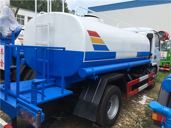 罐體采用4毫米厚武鋼產容積板焊接而成,內設防浪板,程力大功率灑水泵,可自吸水,加壓排水,前沖15米寬,后灑壓塵,側噴花灑噴頭,尾高綠化高位水炮,射程28米,可調節水柱、大中雨、毛毛雨等,可做臨時消防滅火用。