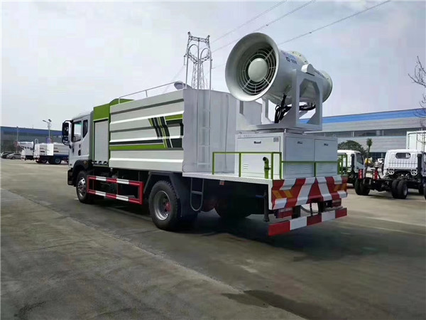 一種就是城市里面使用的抑塵車,抑塵車又稱為:霧炮車、噴藥車。霧炮車噴射的水霧顆粒達到微米級,能有效分解空氣中的污染顆粒物、塵埃等,在霧霾天氣下用于降塵除霧,可以有效的緩解霧霾,其節(jié)水的特性同樣也可以用作灑水車使用。霧炮車還可以降塵、灑水,把樹上的灰塵洗掉。霧炮車噴灑出的水霧與懸浮在空氣中的PM2.5和PM10粉塵顆粒吸附、聚合、沉降,達到消除污染物和減霾的目的。盡管霧炮口徑巨大,但其噴灑耗水量僅為傳統(tǒng)灑水車的兩到三成,覆蓋面積和除塵效率卻高出20倍。既提高效率,也避免路面積水影響交通。