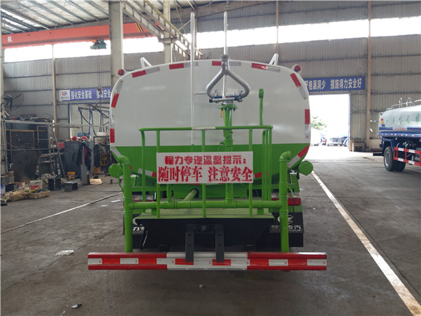 比如說同樣一臺12方的國六多利卡灑水車如果是市政環衛使用他可能就需要標準配置前沖丶后灑丶側噴丶高炮。給街道灑水降塵降溫,給綠化帶澆水。工地或者拆遷使用他可能會加裝霧炮噴灑裝置給工地抑塵避免揚塵。園林綠化果園使用他會選擇加裝農藥噴灑裝置給果樹噴灑農藥。有的需要給洗浴中心運送熱水他會選擇多加裝熱水泵。還有運輸飲用水他的罐體和管道材質可能會選用不銹鋼材質。灑水車的品牌也是多樣化的有東風老款145,東風D9,東風T3,東風天錦,解放,大運,福田等多種品牌。不同的選擇價格肯定不同。