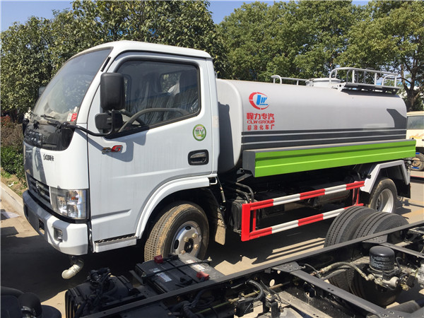 東風5噸不上牌灑水車改裝配置:罐體用4MM碳鋼板制作,罐內隔板具有防波作用,以減低灑水車行駛時罐體液體的沖擊。整車帶一個專用灑水泵(垂直最大吸程6米),灑水寬度14米,射程28米。灑水車配備2個前沖(噴)(能將路面泥巴、塵土、垃圾沖干凈);2個后灑(能均勻地將水灑在路面,一次灑水寬度14米)、2個側噴(花灑)(能均勻地將路旁綠化帶澆灌)、帶1個后工作平臺,平臺上安裝1個綠化灑水高炮(灑水炮可全方位旋轉,可連續調成直沖狀、大雨、小雨、毛毛雨,霧狀可調節沖洗高大樹木),引水時間<5min,流量90m3/h。帶1個消防接頭,帶1個自流閥,1個過濾裝置、人性化爬梯及側防護欄,安裝灑水音樂喇叭。