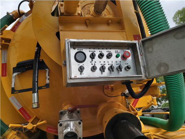 聯合疏通高壓清洗吸污車專用部分由取力器、傳動軸、真空吸污泵、壓力罐體、液壓部分,管網系統、真空壓力表、視糞窗、洗手裝置等組成,隨車配置大功率真空吸污泵和優質液壓系統,罐體封頭一次壓鑄成型、罐體可后開、雙頂自卸。罐內污物可通過后蓋直接傾倒,具有真空度高(比吸糞車的吸力更大)、噸位大、效率高、用途更廣泛的特點。