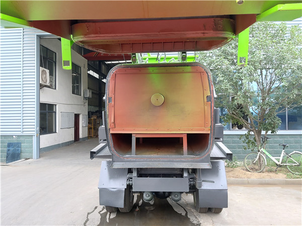 顧名思義,是在單一餐廚垃圾車車體后加裝垃圾斗翻轉機件或后掛桶翻轉機件。壓縮的原理于前述的車型有所區別,通過后部人工投放或是 直接掛桶的方式裝填垃圾,并往廂前部推送擠壓垃圾。同樣是后敞的廂體尾部,由卸物機件將垃圾推出廂體。