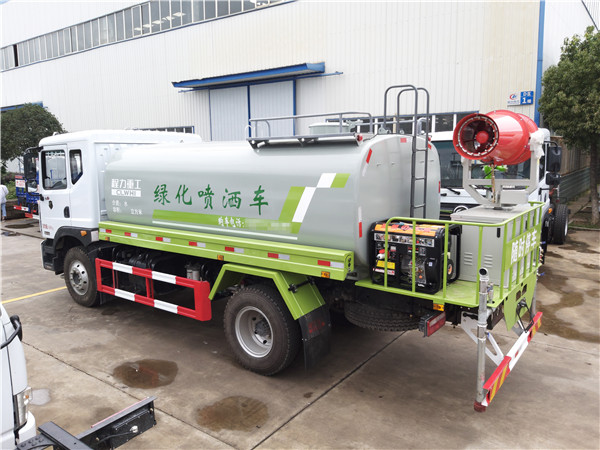 【標配】:容積11立方(罐體:方箱),配置60-90億豐泵,帶前沖、后灑、側噴、平臺、高炮,全車大通徑球閥,前后主管道65變50,后平臺加裝80米噴霧機組。