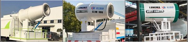 抑塵車風機的作用是產生高速氣流。當風機葉輪旋轉時,高速氣流從出風口噴出,將噴頭霧化形成的細小霧滴流吹送到需要區域。同時在氣流的作用下,植物枝葉產生擾動,有利于霧滴進入作物內部,提高了防治效果。除塵霧炮機采用驅動方便、風壓高、風速大、氣流穿透力強的離心風機,這樣除了可以保證噴霧射程外,還可以給使霧化效果提高。葉片采用全壓效率較高的后向彎曲葉片。