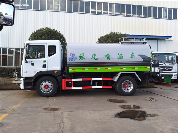 環衛灑水車的前端裝有鴨形噴嘴或圓頭沖嘴,后面裝有圓柱開灑水噴嘴或蓮蓬頭噴嘴,后部有一工作平臺,裝配有水炮,后部還可裝8個噴嘴(選裝)。噴水器一般用于沖洗街道,起除塵和降溫作用,其噴水器可以用調節噴嘴螺紋的方法改變噴水器的噴灑方向和角度,高射水炮可以用于城鄉園林綠化及應急消防。蓮蓬嘴可以澆落路中間噴水器沖起的灰塵,起到清潔空氣的作用。