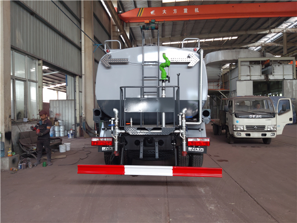 東風環衛灑水車油漆光潔度高、附著力強。該型車罐體及金屬附件進行了噴丸處理,噴涂高分子含Zi底漆和品質面漆,附著力強,耐腐性好,漆膜均勻,色彩光亮持久,能夠承受潮濕、多塵、鹽霧等不良環境,在5年使用期內不會發生開裂、起皮、褪色等問題,不僅提高了產品的美觀程度,還有效防止銹蝕。