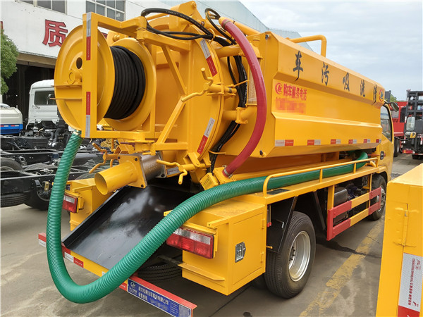 該車采用國六東風凱普特型EQ1041SJ3BDF底盤,平頭可翻轉駕駛室,3308軸距,五檔變速箱,玉柴115馬力發動機,7.00R16鋼絲輪胎(備用輪胎一條),方向助力,罐體采用優質武鋼板材6mm制成,吸污容積4立方,配5噸吸污車專用吸污泵,罐體帶液壓舉升裝置,后封頭可液壓打開,帶自流口,防溢閥,帶洗手裝置,視污窗口,兩邊水箱容積1.5立方可互通,高壓清洗泵選用德國進口,隨車配備一根8米吸污軟管及60米清洗管,其余按廠家標配生產.該車具有免征公告(可免交車輛購置稅)注:可上藍牌。