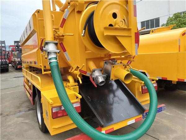 清洗吸污車關鍵元件是真空泵,利用真空泵工作產生的壓力差進行抽污。安裝進口防溢流裝置,防止糞便、污水因吸滿倒灌至真空泵系統。