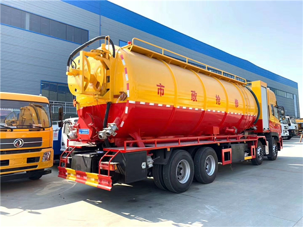 而東風天龍清洗吸污車帶副發則可以通過升舉罐體,打開后蓋的方式直接排污,沒有排放殘留,不需要清理罐體。如果長時間不用車,為了減少罐體的腐蝕,需要將罐體內部沖洗干凈。東風天龍清洗吸污車帶副發沖洗罐體內壁是,需要人進入罐體內,用水來沖洗罐體內壁。而東風天龍清洗吸污車帶副發在沖洗罐體內壁時,可以在打開罐體后蓋后,就站在罐體外面利用水龍頭沖洗就可以了。