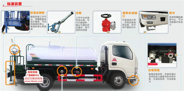 全方位旋轉,吸灑自如。可全方位旋轉,可連續(xù)調成直沖狀、大雨、小雨、毛毛雨,帶安全護欄,配備大功率專用灑水泵,泵可自吸自排,安裝過濾網(wǎng),帶消防接口,可通過消防栓進水,帶自流閥。