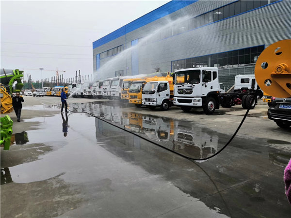 13、清洗部分配備原裝意大利HPP ELS122/160進口高壓泵:流量160L/min,壓力16MPa,可選裝國產天津通潔3N2-S大壓力高壓泵:流量170L/min,壓力24MPa。另此車配備60米φ19耐高壓PVC夾層高壓管及十個不同型號的噴頭,可有效適應不同大小不同距離的市政管道、工業排污管道的清洗與疏通。