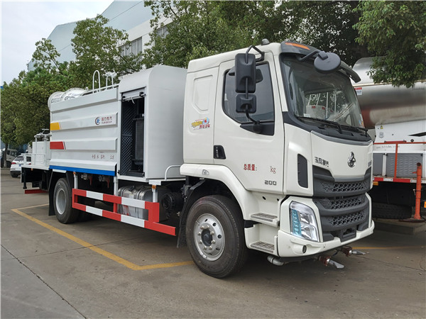柳汽乘龍多功能霧炮車是由動力系統、儲水罐、抑塵系統、低壓水路系統、液壓系統以及電氣系統組成,整機外觀沉穩端莊、結構緊湊。為了保證高效的施工作業,該機配備兩套動力來源,下裝發動機,為車輛行駛提供動力來源;上裝發動機直接驅動液壓系統,是霧炮實現高效噴霧的總動力來源。中央控制系統集成在駕駛室內,控制系統布局合理,操作簡單,通過該系統可控制霧炮及低壓水路的噴灑作業,整個過程由一位機手即可完成,降低了工人的勞動強度,節約了人員成本。