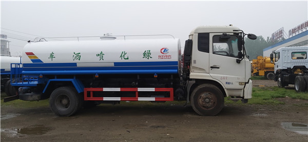 隨車選裝20米綠化卷盤,可噴灑農藥,罐體金屬漆罐體制作:佛山灑水車采用自動流水線罐體生產工藝分為:下料、拼板自動焊,封頭旋壓成型,罐體一次滾壓成型等國內先進生產工藝.罐體材料多采用優質碳鋼板生產。