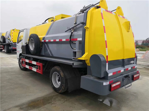 國六東風多利卡D6餐廚垃圾車,搭配朝柴130馬力國六發動機,萬里楊五檔箱,7.00R16鋼絲胎,軸距3308mm,原廠空調,電動玻璃,中控鎖 正規東風股份GB7258-2017新規底盤;上裝采用Q345高強度錳鋼板制作,廂體容積約5立方米,合肥快速液壓泵,大流量快速手自一體多路換向閥,可編程PLC電控系統,罐內干濕分離,推鏟擠壓卸料功能,后門液壓開啟并帶液壓鎖緊,裝有防誤操作。上蓋液壓開啟及關閉,右側部翻120/240升垃圾桶機構。手動及電控操作,并選裝遙控器操作。