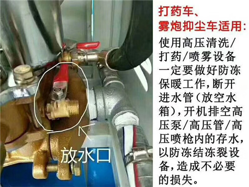 1,用抑塵灑水車之后放空灑水泵存水(再次使用需要添加引水),防止水泵凍裂,