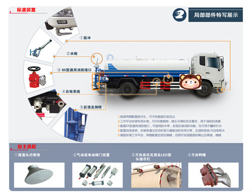 多功能抑塵灑水車又稱消防灑水兩用車、灑水消防兩用車、森林消防灑水車、學校消防灑水車、機場消防灑水車、社區消防灑水、街道及鄉鎮和鄉村消防灑水功能。是一款集消防車和灑水車于一體的兩用車,是介于消防車與灑水車之間,具有消防灑水一體化用途,與消防車相比雖缺少器材箱,但與消防車的射程相同,具有同樣的消防功能。