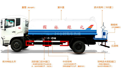 4、客戶購買灑水車時,可以根據實際需要要求提高后噴灑噴嘴的設置高度,以擴大后噴頭的灑水寬度,在灑水場合的小范圍內還可以直接用單噴頭完成灑水作業,帶來更加優秀的壓塵、降溫效果。