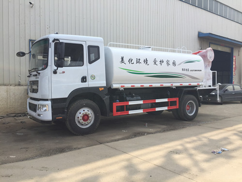 灑水車是利用本車發動機動力通過取力器驅動車載灑水泵,從進水口向本車加水或者將罐體中的水通過管道輸送到各個噴頭,從而實現各種功能。
