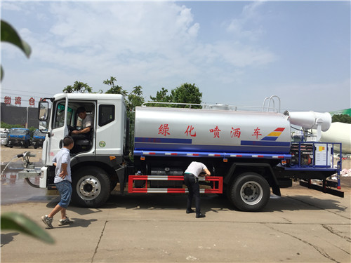 灑水車噴水器功能說明:灑水車前裝有鴨形噴嘴或圓頭沖嘴,后面裝有圓柱開灑水噴嘴或蓮蓬頭噴嘴,后部有一工作平臺,裝配有水炮。后部還可裝8個噴嘴(選裝)。噴水器一般用于沖洗街道,起除塵和降溫作用,其噴水器可以用調(diào)節(jié)噴嘴螺紋的方法改變噴水器的噴灑方向和角度,高射水炮可以用于城鄉(xiāng)園林綠化及應急消防。蓮蓬嘴可以澆落路中間噴水器沖起的灰塵,起到清潔空氣的作用。