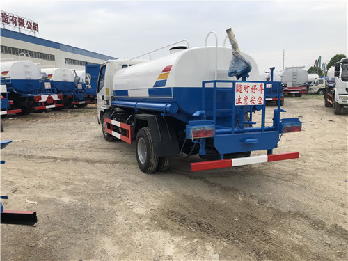 5方東風福瑞卡灑水車整車型號:HLW5071GSSEQ5(帶噴霧機時整車型號為CLW5070GPSE5型綠化噴灑車),底盤采用東風福瑞卡,3308mm軸距,7.00尼龍胎,ABS,正宗國五云內95馬力,萬里揚5檔變速箱,帶動轉,汽剎,有免證,嚴格按公告尺寸生產。前沖后灑,后工作平臺帶高炮,右位花灑,側噴。
