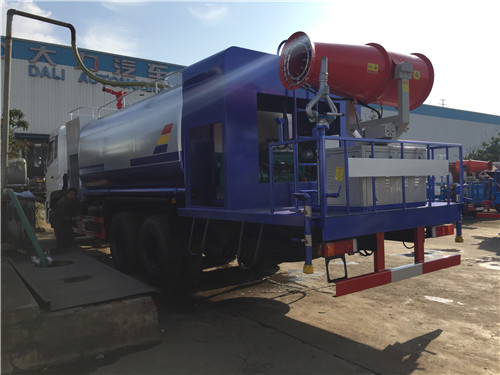 在常規灑水車的基礎上,加裝了抑塵噴霧系統,外接的380V配套動力組把罐體內的水霧最大霧化作業行程高達20-100米,穿透性好,作業效率高,大大降低了勞動力成本。可對煤堆噴灑抑塵劑、固化劑,使得煤灰不會被風吹起,降低空氣粉塵污染。采用了遙控操作指揮系統,可360度旋轉,兼具綠化噴灑,消防應急,除塵降塵,噴藥消毒等功能,遠程遙控,使用方便。