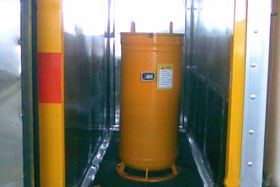 抗爆容器宜裝在后倉內(nèi)。隔離墻的厚度不應(yīng)小于80mm。墻的夾層內(nèi)應(yīng)裝入能吸收爆炸沖擊波能量且不燃(或阻燃)的材料;安裝抗爆容器時,泄爆孔的位置應(yīng)避免與汽車底盤的重要零部件相對峙。